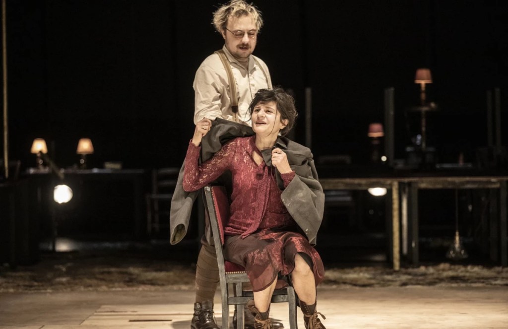 Au TNP Villeurbanne, se joue jusqu’au 6 février la magnifique pièce Ivanov, de Tchékhov, mise en scène par Jean-François Sivadier, avec Nicolas Bouchaud dans le rôle titre et Norah Krief dans celui d’Anna. L’une des premières pièces de théâtre écrites par le grand dramaturge russe mort à 44 ans, la seconde, je crois, après Platonov, et bien avant ses trois grandes œuvres les plus célèbres que sont Oncle Vania, Les Trois Soeurs et la Cerisaie. Le cadre et l’histoire ressemblent à ceux de ces dernières : Ivanov est un propriétaire terrien, ou plutôt dirait-on, il a reçu un domaine en héritage avec pour mission de l’entretenir et visiblement, ce n’est pas son truc. Il a embauché pour cela régisseur et valets. Qu’il doit payer bien sûr, pour autant qu’il le puisse, car les affaires, à ce qu’il semble, vont plutôt mal. Il emprunte, il a des dettes. Il s’est marié avec une femme qu’il adorait au commencement, Anna Petrovna. Puis, il ne sait trop pourquoi, il l’a moins aimée. Au point que dans le fond, il faut l’avouer : il ne la supporte plus, en tout cas plus en tête à tête. On sent de la part de cet homme, un profond sentiment de culpabilité. Quel est-il ? D’avoir entrainé la femme aimée dans une vie commune qui n’était pas à la hauteur de leurs espérances ? D’avoir profité d’elle ? De se sentir à ce point nul qu’il se pense incapable de la rendre heureuse ? On peut le penser, et c’est en cela que les personnages de Tchékhov sont si émouvants : ils ne disent pas ce que pourtant un observateur un peu sensible peut deviner. Ce désespoir le pousse, le soir, à sortir pour se mêler aux poivrots et aux débauchés qui se réunissent chez un certain Lebedev, homme important du district. Lebedev a une femme, Zinaïda, âpre au gain, et une fille, Sacha (Alexandra) plutôt idéaliste. Le passe-temps favori des gens chez Lebedev est de dire du mal des autres, de ceux qui ne sont pas là. Ivanov en reçoit pour son compte : en fait d’amour, on lui colle la rumeur selon laquelle il aurait courtisé Anna la Juive (qui s’appelait autrefois Sarah Abramson) parce qu’elle avait de l’argent et qu’il espérait une belle dot. En réalité, Anna, par amour pour lui, a accepté de se séparer de sa famille et de sa religion, et ses parents, qui l’ont reniée, ne lui ont rien donné pour le mariage. Alors Ivanov, par dépit, se serait détourné d’elle. Autre façon, bien sûr, de voir les choses, par rapport au point de vue plus généreux que j’exposais à l’instant. En son absence, les ragots vont donc bon train, tout comme les propos antisémites (de vieilles blagues juives aussi, comme celle du couple qui se sépare : Rachel dit à Samuel qu’elle veut se séparer de lui parce que depuis le temps qu’ils sont mariés, il ne lui a jamais rien acheté ! Mais, lui répond-il, je ne savais pas que tu avais quelque chose à vendre ! Rires – en réalité ceci est un rajoût à la pièce). Seule Sacha le défend, attirée par sa délicatesse et son humanisme. Elle est bien sûr amoureuse.