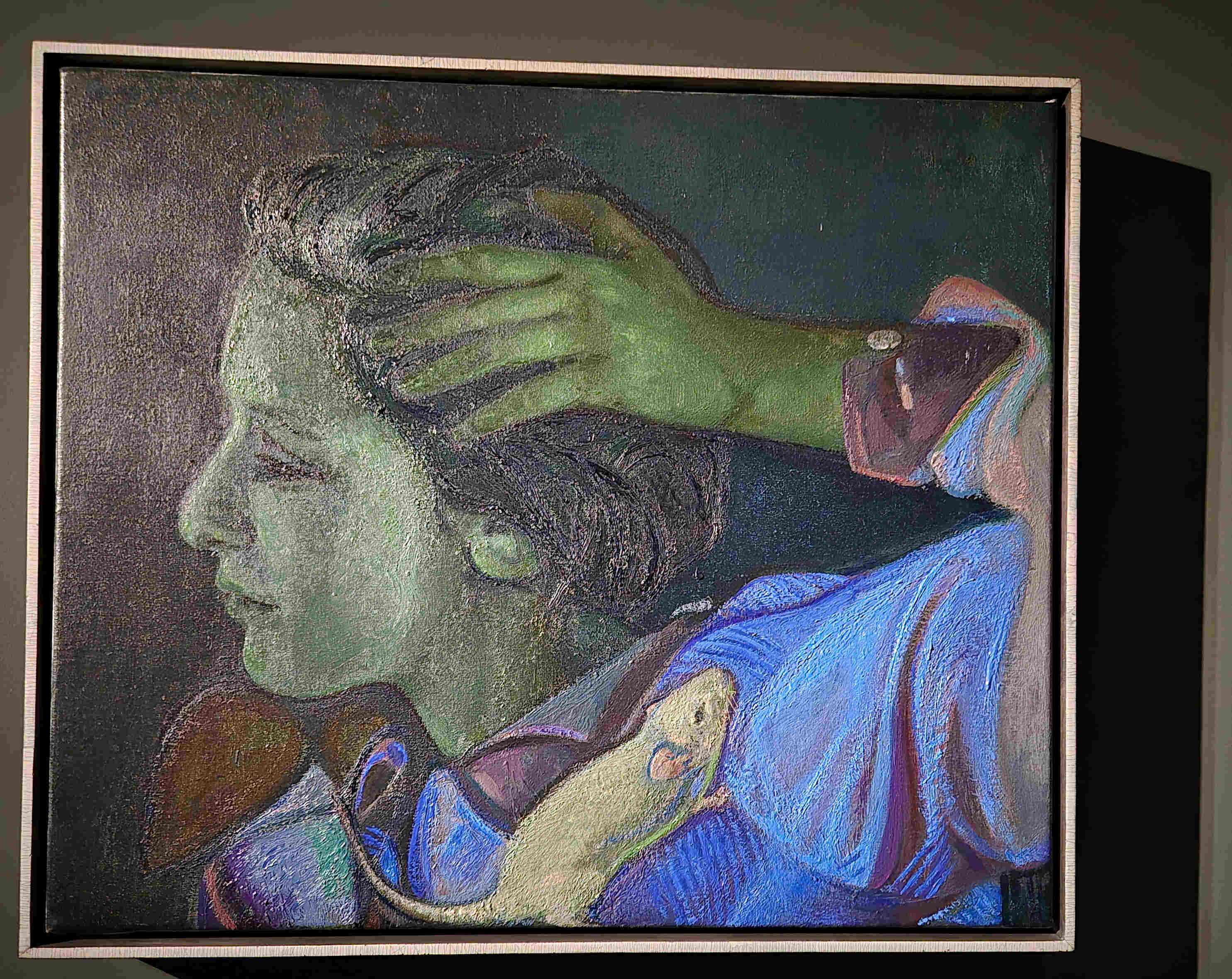 Visages d’artiste au Petit Palais, expo modeste avec, pourtant, ses pépites. Que je trouve davantage dans l’art contemporain que dans l’art ancien. Claire Tabouret pour un de ses multiples autoportraits (elle en fait un par jour, à ce que l’on dit) ici un double, avec collerette, comme deux sœurs jumelles accolées l’une à l’autre. Giulia Andreani dont j’avais tant aimé le portrait d’une jeune fille lors d’une récente biennale à Lyon, ici représentée par un cours de dessin, toujours travaillé au gris de Payne, sa couleur fétiche. Sophie Calle et ses rapports de filature par l’agence Duluc. Françoise Petrovitch (au rez-de-jardin) couleurs fraîches et juvéniles pour un groupe de baigneurs au regard absent. Nathanaëlle Herbelin, visible sur une petite vidéo, revendiquant le droit à une seconde grossesse ! Et Nina Childress, autoportrait en clown, née aux Etats-Unis mais vivant en France, première femme entrant au département peinture de l’Académie des Beaux-Arts et que…. qui n’est autre, heureuse coïncidence… que la personne près de moi qui commente elle-même son œuvre à un groupe de jeunes femmes ! Première fois de ma vie où contemplant un tableau, je me retrouve avec son auteur à côté de moi, surgie comme par magie ! voir: https://www.instagram.com/p/DWXUPtAgmpj/ NB: on peut trouver sur le web l’enregistrement video de son installation à l’Académie des Beaux Arts, avec un très beau discours en forme d’éloge de Catherine Meurisse.
