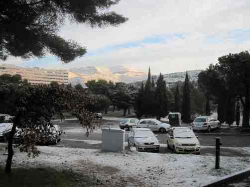 Au matin du 21 janvier, on n’en croit pas ses yeux : tout est blanc. Il a neigé pendant la nuit, puis les basses températures ont transformé la neige en glace. Aux alentours, des bus se sont mis en travers des routes, la progression vers la ville a été ralentie. Ceux qui viennent d’Aix mettent deux heures pour arriver.