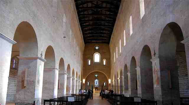Le colloque lui-même avait lieu près de l’abbaye des Trois Fontaines. Abbaye cistercienne dont l’intérieur, comme toutes les cisterciennes, est d’une grande beauté austère. La légende veut qu’ici fut décapité Saint Paul et qu’une fois la tête décollée (et pas décapitée, Alain, pas décapitée, on ne décapite pas une tête) en rebondissant trois fois, elle fit naître trois sources. L’Abbé en personne, qui nous fait visiter les lieux durant un intermède, nous dit qu’il n’y avait rien d’étonnant à cela en cet endroit le plus bas de Rome, qui était occupé par les marécages (c’est donc bien que, lui, les miracles, il s’en tape) et que l’attribution de ce lieu au martyr de