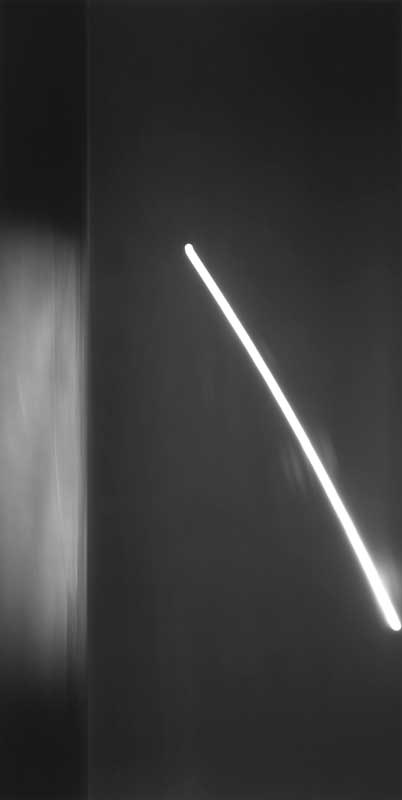 Sugimoto photographie donc l’horizon, depuis un point de vue en général élevé, au-dessus de la mer. Comme il ne veut pas être importuné par le passage d’un bateau, il part s’isoler au bord de mers lointaines, Terre-Neuve, Arctique, Mer rouge, Mer de Chine, et là, il peut tenter de capter cette impression extraordinaire de flotter dans l’espace, hors de la Terre. Et comme il plante ses photographies à la verticale, de sorte que l’horizon devienne un trait droit qui monte vers « notre » ciel, nous sommes encore plus déstabilisés, mis en lévitation, devenus par la magie d’une exposition, astronautes à bord d’un Apollo …