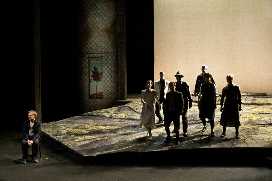 Mais cette pièce raconte aussi la résistance de cette population slovène contre les nazis, seule résistance organisée conduite de l’intérieur du Reich allemand (puisque l’Autriche, comme on sait, avait été annexée…). C’est là où la mise en scène est très belle, tout en restant discrète et légère : il suffit d’un sol irrégulier censé représenter une terre aride, l’évocation de quelques arbres, l’entrée et la sortie sur le plateau de deux membres de la famille (la tante et l’oncle) en habit de treillis pour mettre en place une atmosphère de maquis et d’ombre. La tante (Dominique Valadié) qui, au début, est Ursula, toujours triste et grincheuse, devient Snezena, « la neigeuse » en slovène, combattante qui perdra la vie, prononçant les plus belles paroles de la pièce. Quant à l’oncle Valentin, qui joue les gandins, parle anglais et part au front avec belle ardeur, il n’en reviendra pas, comme n’en reviendra pas non plus le plus jeune, Benjamin, enrôlé par l’armée allemande alors qu’il ne pouvait appuyer sur la gâchette de son doigt paralysé.