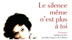 On ne se rend pas compte à quel point cette femme-là a cette chose extraordinaire pour laquelle il n’y a pas de nom : du courage en même temps que du talent. Le courage des mots. Celui de les choisir quand bien même il nous en coûterait, et il lui en coûte, puisqu’elle est toujours sous le coup de la plus grave accusation qui soit aujourd’hui en Turquie, celle de porter atteinte à la sûreté de l’Etat en ayant écrit dans un journal kurde. Tout cela parce qu’elle l’a dit avec ses mots, la brutalité des coups d’état, la violence contre les Kurdes, l’odeur âcre des armes en action, le piétinement des morts dans les manifestations interdites et l’écho sourd ou strident des corps que l’on torture. Et le talent, le talent incroyable des grands écrivains qui, rien qu’avec la matière brute des mots, font des oeuvres qui se tiennent comme des stèles face à l’éternité.