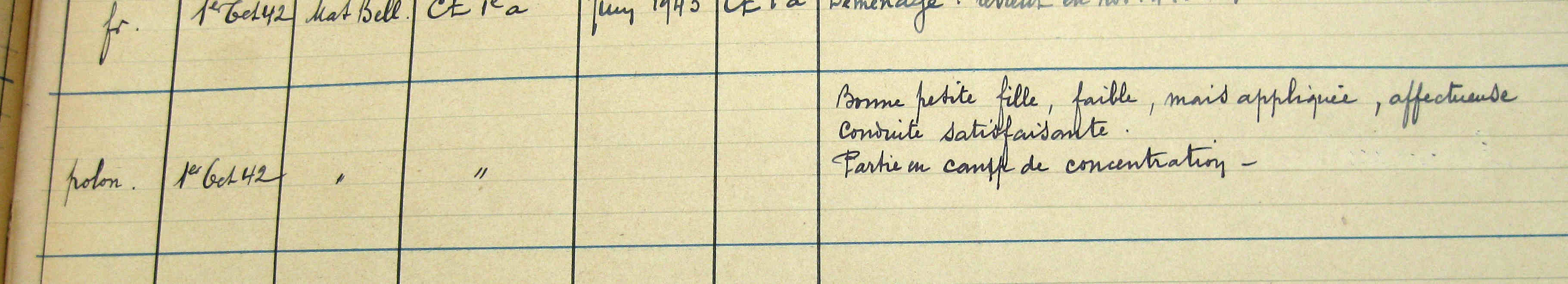 extrait de registre scolaire en 1942