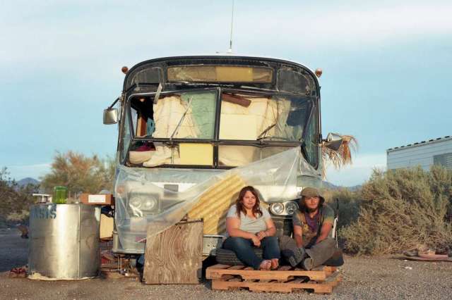 Henno, Laura, photographe, née en 1976 à Croix (France), lauréate du prix Découverte des Rencontres d’Arles 2007, expose en ce moment aux Rencontres d’Arles, à la commanderie Sainte-Luce : Rédemption. Toujours les Etats-Unis. Ici, Slab City au coeur du désert de Californie. Une vieille base de l’armée américaine abandonnée et dont il reste des semelles de béton (slabs) où peuvent venir s’amarrer toutes les jeunesses en détresse qui viennent là chercher une liberté illusoire dans un confort des plus précaires, refaisant des intérieurs de salon dans des camions et des bus rouillés, avec des enfants qui ont encore la possibilité d’aller à l’école comme seuls espoirs. Petites videos prises sur le vif qui nous font entendre des histoires presque aussi étonnantes que celle de la Turtle du livre de Gabriel Tallent.