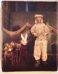 Wegman, William, photographe né en 1943 à Holyoke (USA), expose en ce moment aux Rencontres d’Arles, au palais de l’Archevêché : Etre humain. L’exposition la plus drôle, et pourtant ce chien, mille fois répété dans des décors toujours renouvelés est plein de mélancolie. Un braque de Weimar baptisé Man Ray… excellent dans tous les rôles d’humain, de chirurgien à blonde, de promeneur de chien à George Washington, parfois déguisé en cube ou en éléphant, vierge Marie ou Tamino…