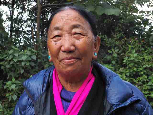 Le matin suivant, quand on a pu trouver place dans le grand refuge un peu plus luxueux, avec des repas qui nous disent quelque chose et même si on le voulait, la possibilité d’une bière, mais on ne le veut pas, dans la chambre de bois d’où l’on a entendu toute la nuit le vent souffler en bourrasques, faisant claquer quelque oriflamme attaché à la façade de l’immeuble, aux vitres totalement embuées par la différence de chaleur entre faces interne et externe, on tend le bras hors du lit, d’un doigt on efface la buée afin de voir…. de voir enfin sorti du néant le sommet qu’on est venu chercher et qui se cachait depuis notre départ, luisant d’une couleur rose dans les premières heures de l’aube. On revêt bien vite ses habits encore humides de la veille par-dessus le pyjama, un bonnet sur la tête et on file dehors où déjà de nombreux pensionnaires se sont rassemblés, perchés sur tous les points hauts environnants, certains avec des jumelles, presque tous avec des appareils photographiques, tous d’humeur joyeuse, la face illuminée d’un soleil qui se lève. Les moteurs des Jeeps déjà toussent et les véhicules se remplissent de bagages. Toutes les origines se côtoient, des Népalais bien sûr, et parmi eux des Gurungs, des Lepchas, des Sherpas, mais aussi des Tibétains et des Indiens des plaines. Une Tibétaine tient dans ses bras un petit chien, qui est probablement celui de sa fille. Notre guide arrive, extrait de ses agapes nocturnes, l’œil vitreux et le parler un peu hésitant. A l’auberge on nous sert des corn-flakes et du café, presque comme à la maison. Puis l’on part pour une avant-dernière étape, peut-être la plus belle de toutes car elle traverse des villages que de temps en temps un rayon lumineux échappé d’entre les nuages honore de reflets vifs renvoyés par les tôles et le bois peint. Des animaux domestiques jouent avec les jambes des trekkeurs. On descend beaucoup puis à la fin, on remonte pour atteindre presque la même altitude que celle que l’on avait en partant. Les villages au soir deviennent déserts. Celui où nous logeons paraît riche et pimpant. Notre homestay est fleuri et tenu par d’aimables jeunes filles de l’ethnie Gurung. L’une ne se fait pas prier pour se faire photographier. Vêtue à l’occidentale, au joli minois, elle semble rodée au service des étrangers. La bouilloire fume, les femmes dans la cuisine pèlent les légumes, la viande sèche. Au matin là encore, on vient nous chercher pour profiter de l’aube sur un sommet majestueux, avant de repartir, descendant cette fois définitivement la montagne pour rejoindre la forêt, au passage des temples, dont l’un, privé, renferme les plus belles statuettes que l’on ait jamais vues, apportées ici par la fuite des Tibétains lors de l’invasion chinoise.