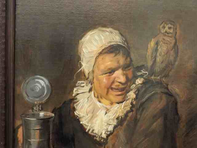 On aime aussi Franz Hals, bien sûr, en qui on peut voir un précurseur de l’impressionnisme, de Manet en particulier, ou bien de ce peintre espagnol moins connu mais dont j’ai appris l’existence aux Beaux-Arts : Sorolla. Ces peintres savent jongler avec les brosses et les pinceaux, ils prennent les plus fins pour peindre avec luxe de détails les étoffes et les dentelles et les plus gros pour sabrer à grands coups des portraits et des robes moins riches, comme dans cette Malle Babe, vieille folle sortie d’un asile qui dialogue avec un hibou, authentique symbole de la déraison. Le peintre lui-même était sensible à l’internement psychiatrique puisque c’est ce que dut subir son propre fils. Rien à voir au premier coup d’œil avec cette petite fille à la robe richement brodée dans les bras de sa nourrice, qui devait sans doute être la fille d’un notable commanditaire du tableau.