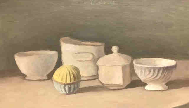 On prête à Giorgio Morandi une existence de moine. De fait, il enseignait les beaux arts à Bologne et eut plusieurs périodes dans sa peinture : ce fut surtout après 1943 qu’il s’adonna à cet art austère et répétitif. Or, ce qu’il y a d’extraordinaire, c’est que ce « répétitif » n’est pas barbant, au contraire. On ne se lasse jamais d’admirer les nuances qui diffèrent d’un tableau à l’autre. Philippe Jaccottet a rendu hommage à Morandi à maintes reprises, et en particulier, dans Le bol du pèlerin, paru en 2001 aux éditions La Dogana de Genève, texte dédié à son ami Michel Rossier, avec qui il avait découvert le peintre bolognais vers 1975. Il écrit d’ailleurs dans son carnet (La Semaison) que, de passage à Milan, il a admiré les Morandi d’un de ses amis poètes, qu’il qualifie de « concentrés de silence, comme il y a des concentrés de parfum ». Le petit livre de 2001 n’est pas une étude à proprement parler sur le peintre, mais plutôt une manière de dire l’essentiel d’une relation que l’on peut soutenir avec un peintre durant des années. Comme le dit l’auteur d’une note dans le volume de la Pléiade, « le point de départ est un constat : la beauté de cette œuvre est produite à partir de quelques objets pauvres et sans aura ». Ensuite, Jaccottet se justifie de ne pas écrire une véritable « étude » :
