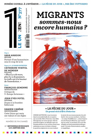 NB : ce numéro du « 1 » ne contient pas que cette nouvelle d’Eric Fottorino (bientôt une pièce de théâtre jouée par Jacques Weber au Théâtre du Rond-Point, à partir du 20 janvier et pour toute la durée de la campagne présidentielle), il contient aussi les analyses de Catherine Wihtol de Wenden et de François Gemenne. Gemenne dénonce la folie des murs qui n’empêcheront jamais les gens déterminés de passer, ces murs qui, dit-il « n’ont guère d’effet sur les migrations, sinon de les rendre plus dangereuses et de renforcer l’emprise des passeurs ».