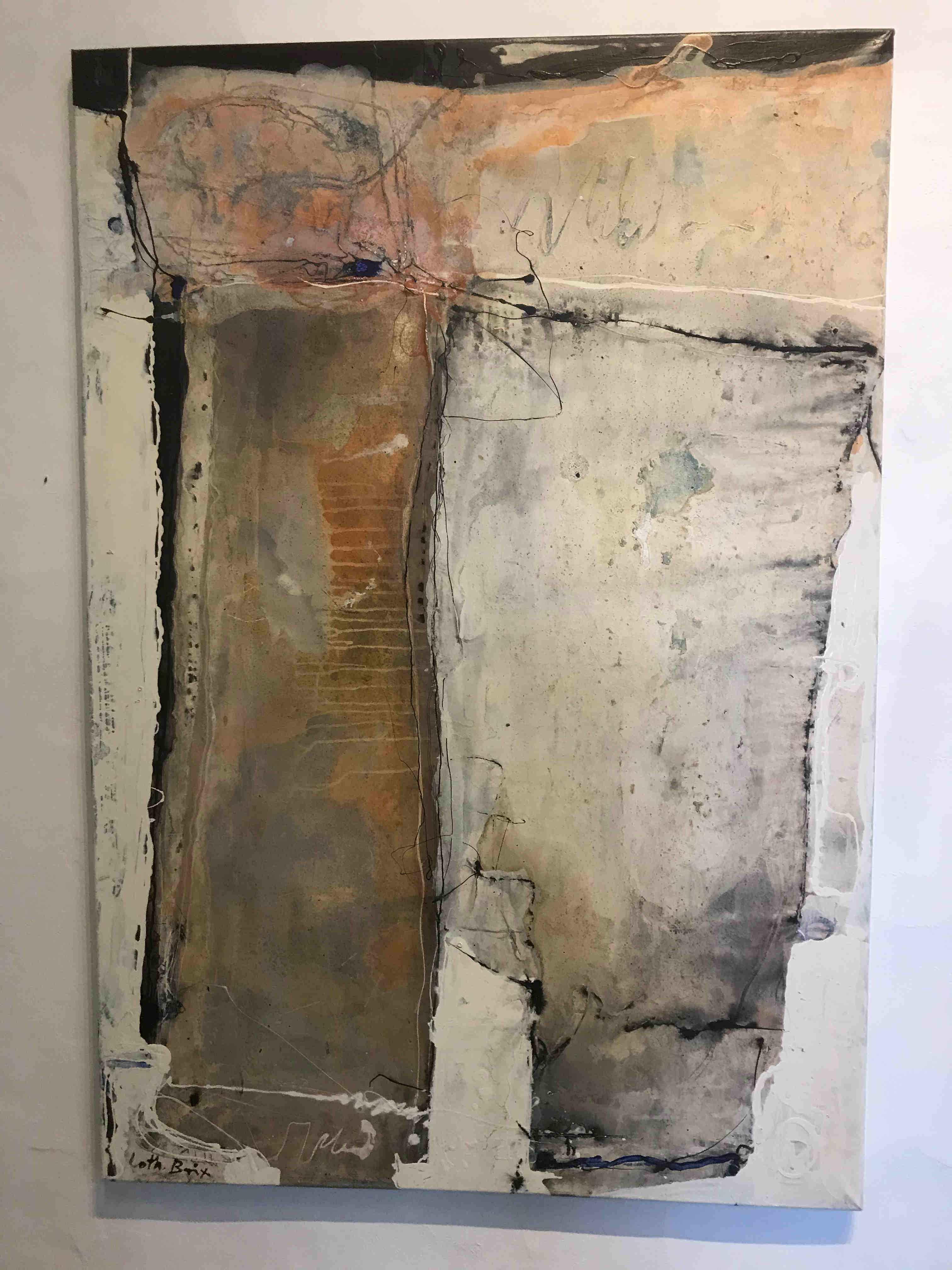 C. et moi fûmes attirés en ce lieu par quelques peintures en vitrine qui explosaient de leurs couleurs et de la matière dense (déjà la lave…) dont elles étaient faites, les artistes avaient pour nom Lothar Brix et Peter Hermans. Nous enfonçant dans les couloirs, nous découvrîmes aussi l’œuvre de l’artiste espagnole Carmen Cologan, faite de rigueur et de géométrie.