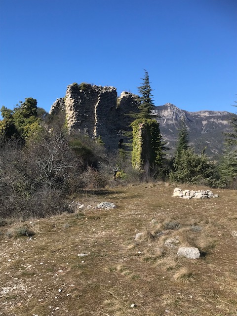 Lorsqu’on quitte le château aux pentes escarpées et que l’on se met à suivre le chemin balisé qui fait une boucle au travers des marnes et des forêts de pins, chemin parfois large – une vraie route – et d’autres fois petit sentier qui serpente parmi les cades et les cistes pas encore en fleurs, on débouche sur le hameau de Saint Pons, dont la première maison s’annonce comme lieu de sinistre mémoire. La petite place juste à côté porte le nom de place du 19 mars 1944.