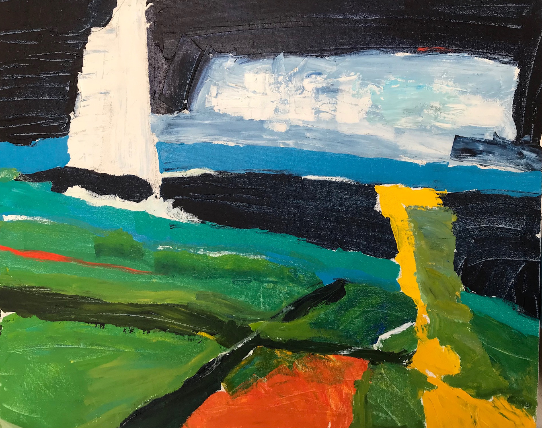 Je sais qu’en principe, un tableau n’a pas besoin de commentaires : les couleurs, la matière, la toile suffisent, les mots risqueraient d’être redondants par rapport à tout cela. Pourtant cela me tente d’orner les miens de courts textes qui en expliqueraient les circonstances et peut-être dévoileraient ce qu’un spectateur non informé ne voit pas, et pour cause, puisque souvent cela ne figure pas sur la toile, est hors-champ.