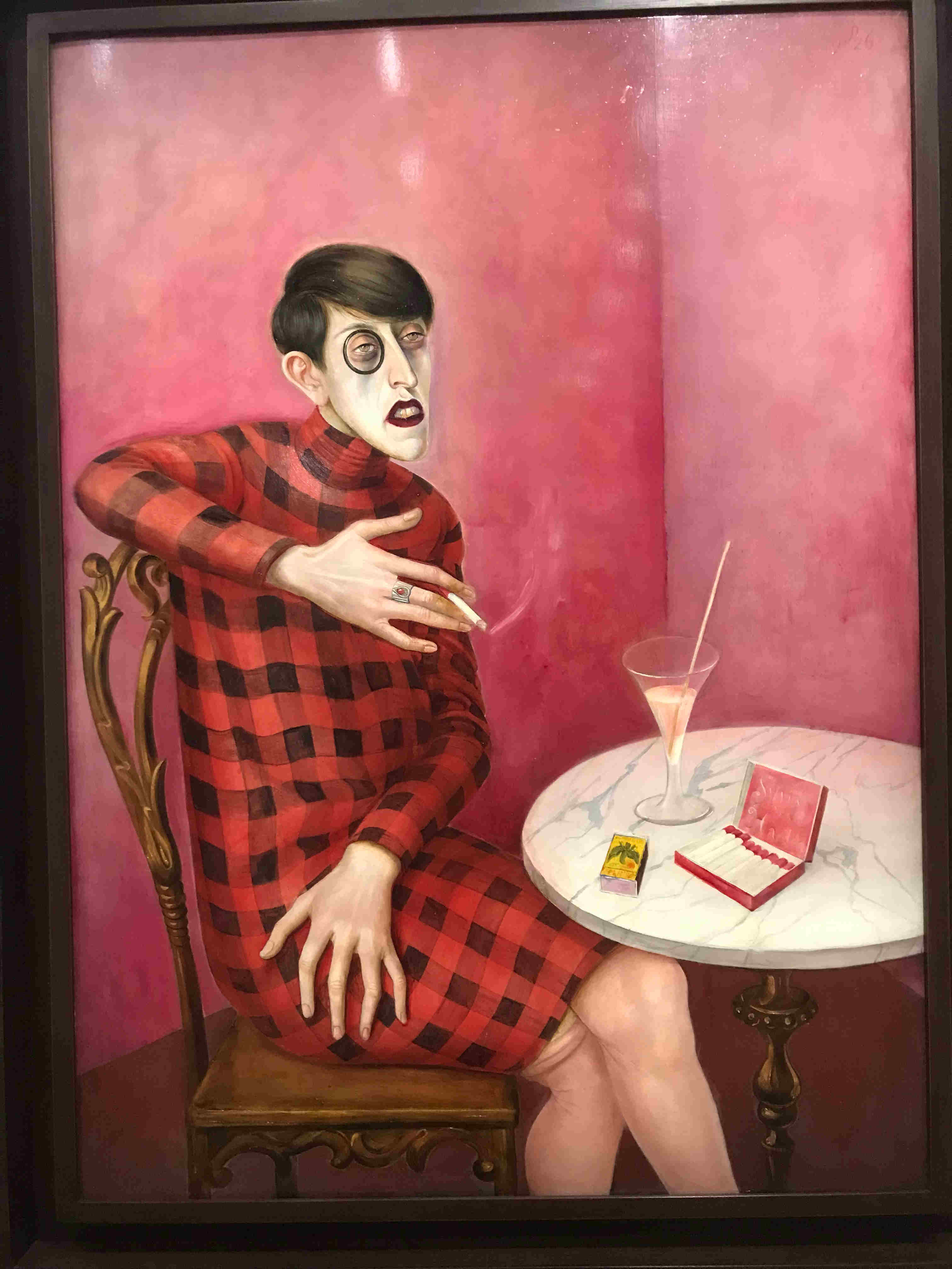 Ce qui apparaît comme fondamentalement nouveau dans l’art et dans la société au cours de cette époque, c’est évidemment la place revendiquée de la femme. Par bien des aspects, la République de Weimar est en avance sur la société qui viendra après-guerre, même sur la nôtre. Epoque de désespoir et de nihilisme (où commencent à se déployer les grandes idéologies qui vont donner les deux grands totalitarismes), la violence s’y donne libre-cours, y compris la violence sexuelle, des corps de femmes assassinées apparaissent sur certains tableaux comme sur ce Rêveur de Davringhausen ou ce Rêve de la sadique d’Otto Dix. Au cinéma, Pabst réalise le terrible Loulou où, au cours d’une longue embrassade, l’homme se saisit d’un couteau qu’il plante au coeur de sa cavalière, célèbre séquence où la mort n’est suggérée que par une main dont les doigts se dénouent. Face à cette violence, les femmes s’organisent, d’abord elles revendiquent une sexualité libérée de la violence des hommes. Beaucoup d’artistes femmes se déguisent en hommes, le lesbianisme se libère. Le thème est directement abordé dans les films, comme dans ce frappant « Jeunes filles en uniformes » de Carl Froelich et Leontine Sagan, de 1931. Le trouble est déjà dans le sexe, bien avant Judith Butler (!), et les hommes en ressentent le contre-coup comme dans un étonnant auto-portrait où l’artiste (Anton Räderscheidt), viril et en cravate se superpose à une image dénudée de lui-même où il est doté de seins et d’un sexe de femme. Le trans-genrisme n’est pas d’aujourd’hui. Ni la tradition queer, la recherche de soi dans l’ivresse et la provocation comme dans ces portraits de comédiennes et danseuses de l’époque, Anita Berber, Valeska Gert.