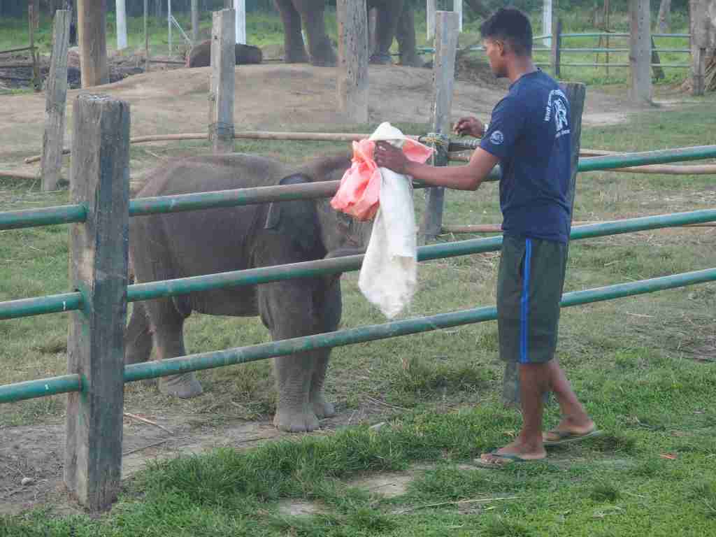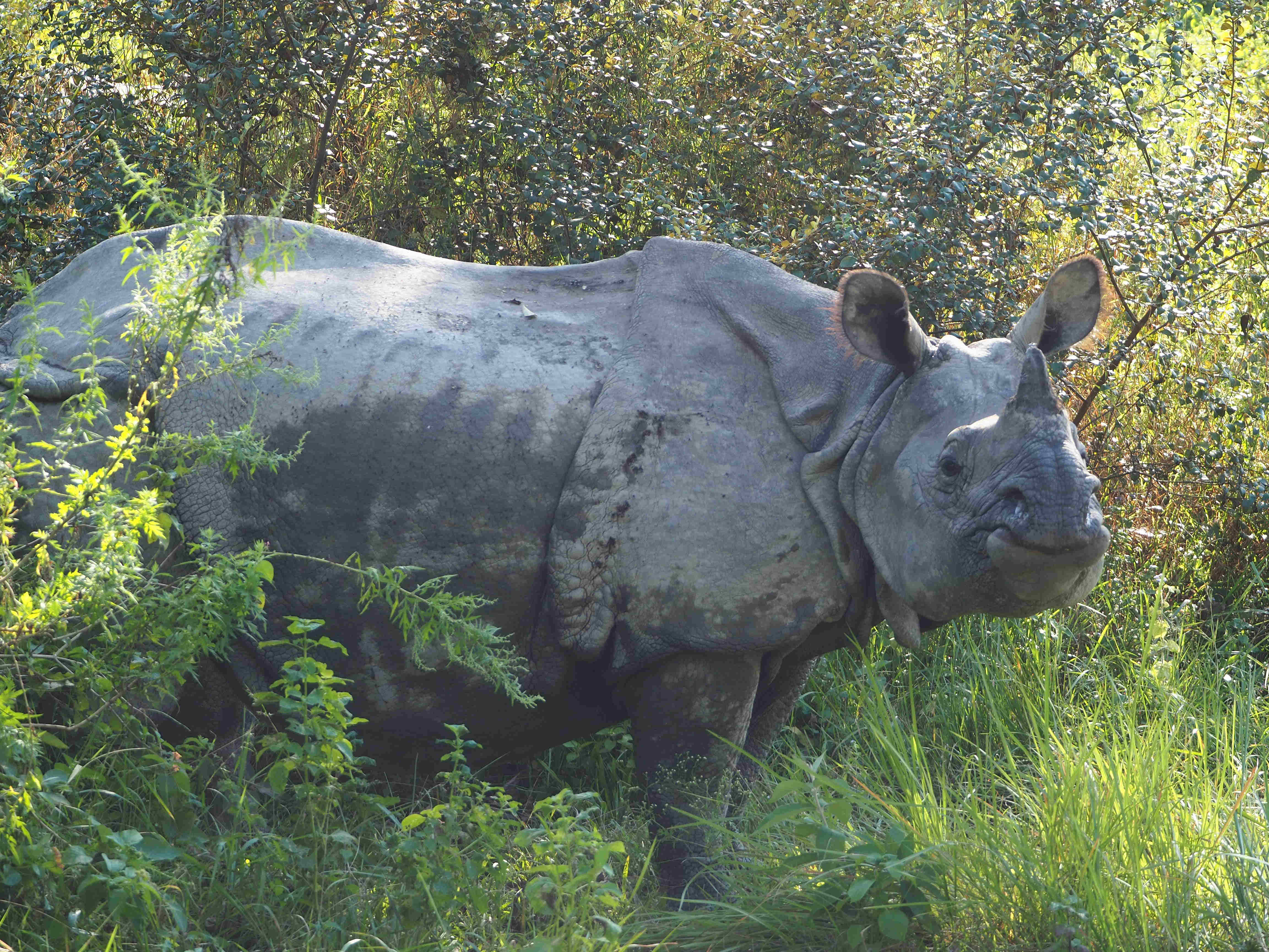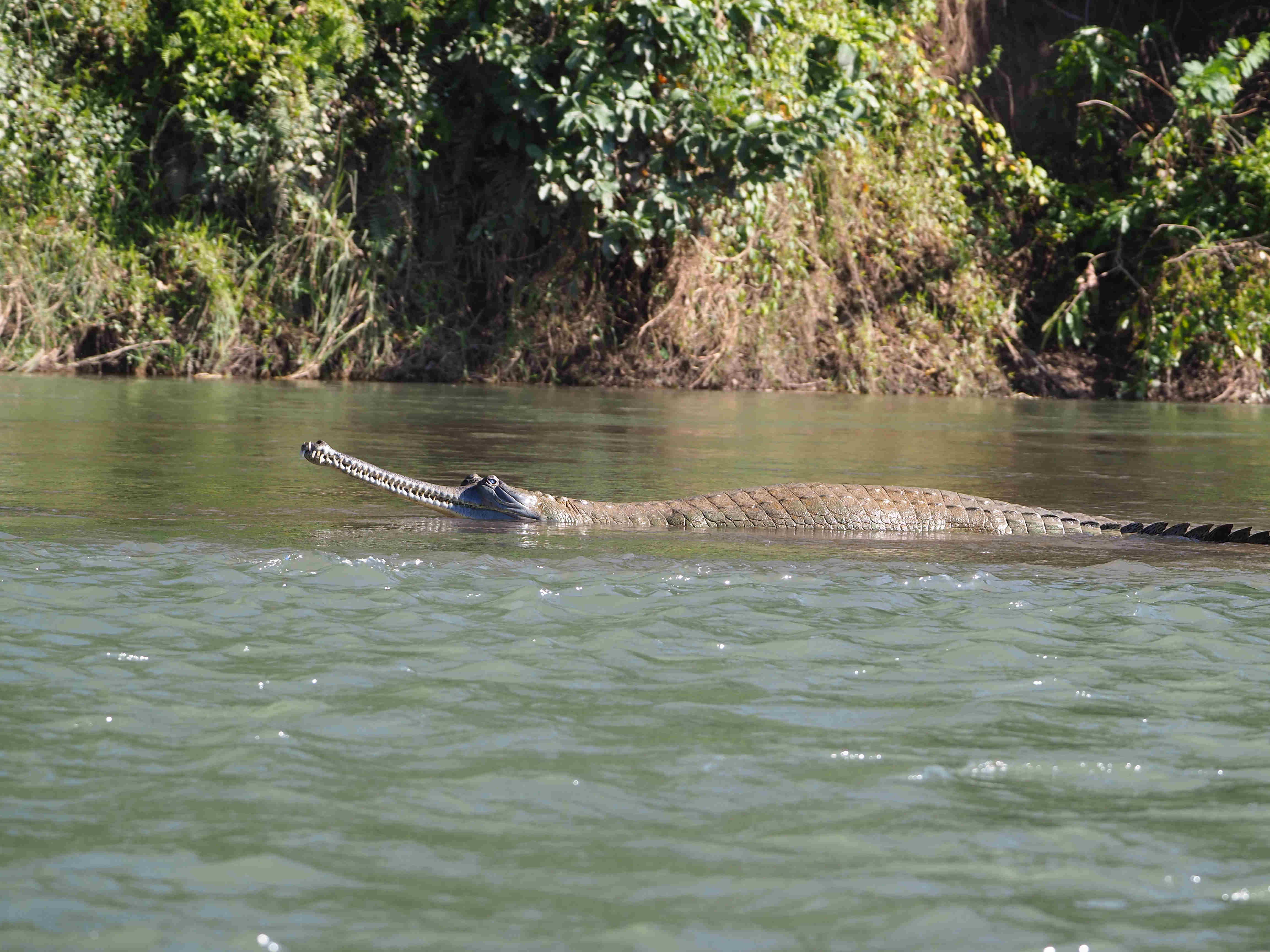 Après, ce sera une autre histoire… déplacement en voiture jusqu’à Chitwan National Park, dans le Teraï, cette zone du Népal qui se trouve au sud, à la frontière de l’Inde, longtemps redoutée (y compris par les Anglais) à cause de ses marécages hostiles et de ses vecteurs de fièvre, espace de savanes et de jungle où nous avons toutes nos chances de croiser rhinocéros, éléphants et qui sait? le tigre…. dans les rivières au cours très paresseux, nous verrons aussi des crocodiles. Beau contraste après nos envolées sur les hauteurs du monde. Nous ferons cela sous la férule d’un guide naturaliste protecteur et savant, qui nous fera visiter également les environs humains, ceux constitués par un village très ancien où vivent les membres d’un peuple dont on ne sait trop les origines : les Tharus, dont on prétend qu’ils auraient quitté le Rajasthan à l’époque de l’arrivée des Moghols pour s’établir un peu partout et notamment ici, ces Tharus cultivateurs de miel qu’Eric Valli décrit dans « Le ciel sera mon toit », et à qui en effet, un peu plus loin, nous achèterons du miel, miel « des fleurs de la jungle », à proximité du grand centre de nourrissage des éléphants. Les pachydermes nous sidèrent par leur calme alors que, paraît-il, il faudrait se méfier d’eux, ils ne sont pas si « gentils ». Toutes ces femelles que nous voyons sont sous la dépendance d’un mâle dominateur que les paysans du coin ont baptisé « Ronaldo » parce qu’il n’a qu’à paraître pour marquer des buts, ici des conquêtes femelles. Les bébés éléphants sont charmants. Nous apprenons que ces animaux intelligents sont à moitié libres, ils passent sept heures par jour en dehors de l’enclos à faire ce qu’ils veulent, mais reviennent le soir pour se faire nourrir. Quant à Ronaldo, il est la terreur, il aurait piétiné et tué au moins sept paysans au cours de l’année écoulée.