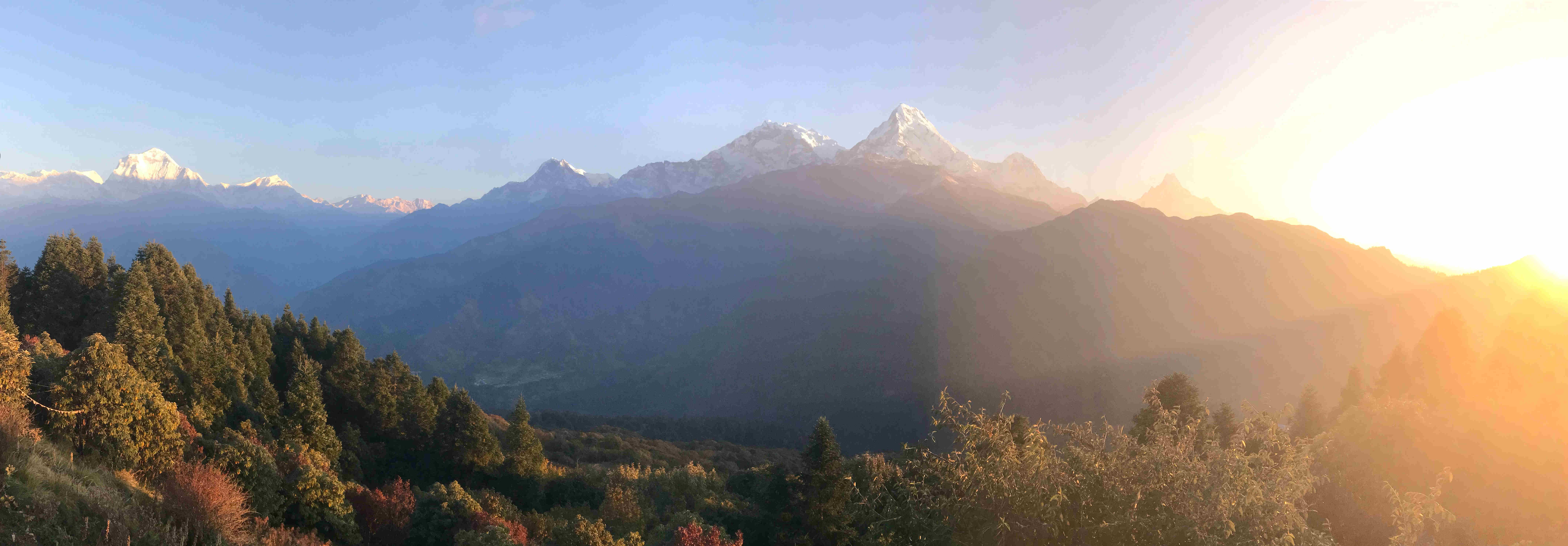 La redescente sur Ghorepani nous conduit à notre terrasse d’où l’on voit désormais l’Annapurna I avec une grande netteté, dans toute sa blancheur et sa transparence de glacier suspendu, vision qu’accompagne un copieux petit déjeuner (en compagnie du jeune français émigré en Suisse dont nous avions fait la connaissance la veille, qui avait travaillé à Sonceboz dans la grande fabrique que l’on voit à l’entrée du village et qui fait de petits moteurs électriques qui inondent la planète).
