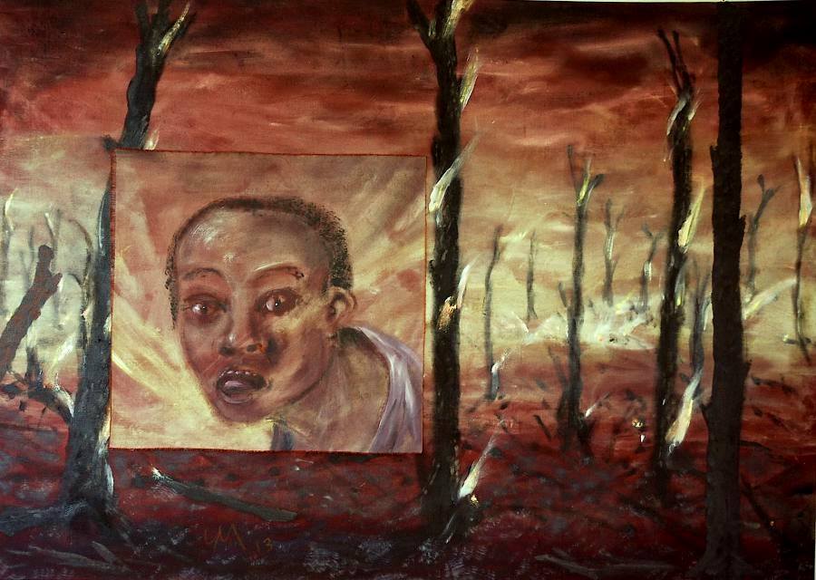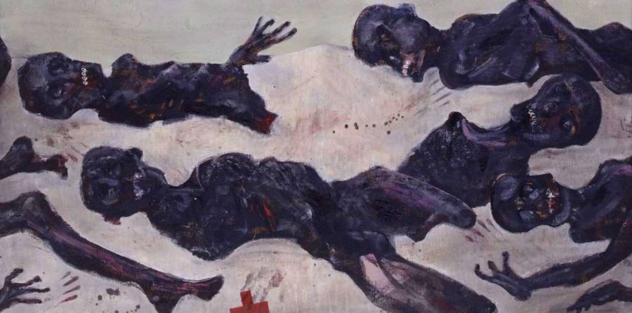 Tchétchénie du peintre suisse Grégoire Müller – toile exposée en ce moment au musées des Arts et d’Histoire de Neuchâtel, exposition « mouvements ».