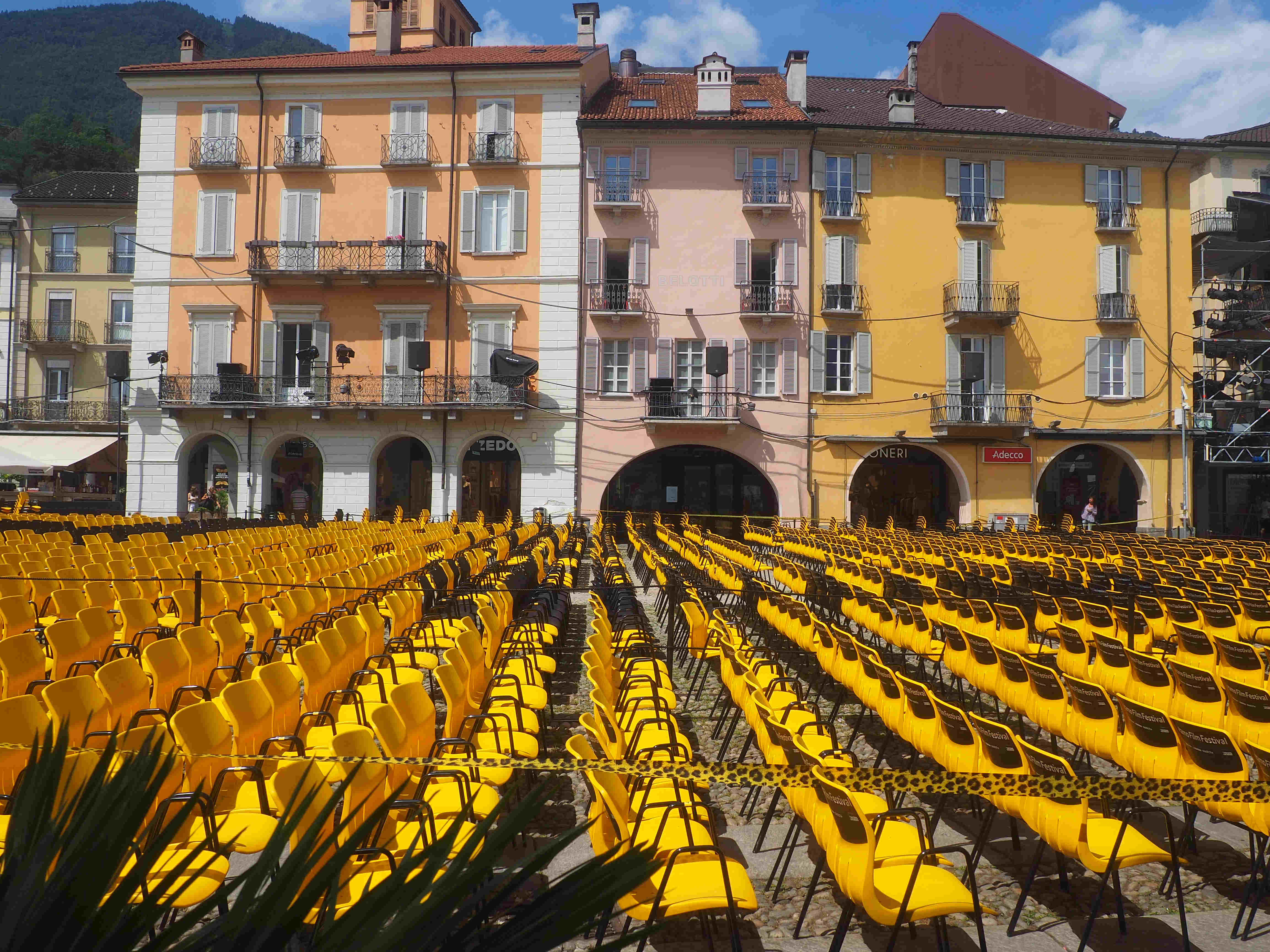 Locarno… trois jours avant le début du festival. La Plazza Grande déjà recouverte de sièges et traversée du grand écran qui verra s’étaler le Léopard d’or… ville de luxe aux petites rues montantes vers la Madonna del Sasso, sanctuaire qui renferme quelques œuvres intéressantes : un Bramantino (le petit Bramante) sur la Fuite en Egypte, un transport du Christ au Sépulcre par un peintre italien du XIXème siècle (Ciseri, 1870), et en redescendant par le chemin de croix, une chapelle décorée de fresques aux couleurs légères datant de la Renaissance. Et le lac si romantique dont les villages paisibles qui le bordent, Brissago, Ascona, Gambarogno… sont desservis par une sorte d’express côtier qui cabote d’une rive à l’autre.