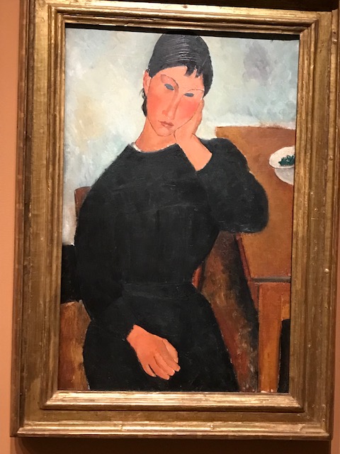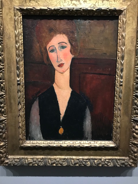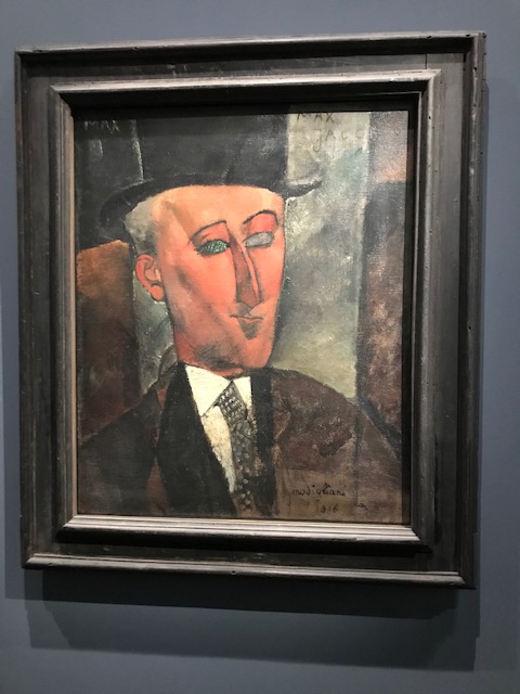Modigliani, c’est autre chose, surtout quand on ne le voit que sous l’aspect de son rapport au marchand, son marchand, Paul Guillaume. Cette optique ne nous le fait voir que sous l’angle de la décoration. Les beaux nus d’Amedeo étaient achetés pour garnir les murs des garçonnières. Quel horrible mot utilisait-on alors pour ces appartements possédés par des hommes riches afin d’y abriter leurs ébats. Simulacres de l’amour. Lieux réservés aux hommes, les femmes s’y aventurant devant savoir à quoi s’en tenir. Cela n’empêche pas qu’on savoure les beautés offertes par le talent du peintre. Femmes aux yeux clos (ou vides, c’est presque pareil), hommes transformés en aimables poètes (Max Jacob, Paul Guillaume lui-même, qui était grand amateur de poésie). Mais il nous manque quelque chose, peut-être justement ce regard, que van Gogh donnait aux portraits des gens simples qu’il côtoyait à Auvers, étonnés d’être peints, n’imaginant pas un seul instant concourir à la gloire d’un peintre qui resterait dans l’histoire, alors qu’ils croyaient avoir à faire à un pauvre fou.