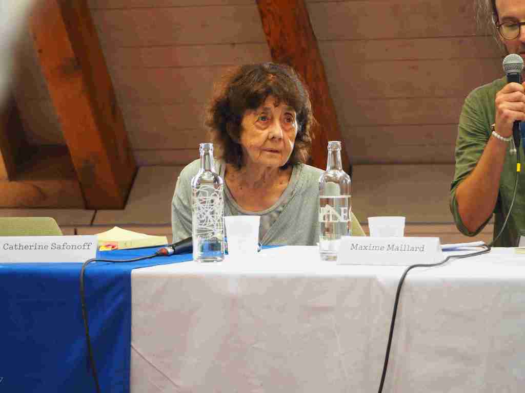 Catherine Safonoff intervient avec Claudie Hunzinger. Deux figures très dissemblables mais complémentaires. La seconde paraît sereine, la première est tourmentée. Il s’agit là encore d’une histoire de maison, mais celle de Catherine Safonoff est plus âpre, pleine de rancune et de sous-entendus. C’est une maison qu’elle a habitée pendant vingt cinq ans bien qu’elle appartînt à son ex, jusqu’au jour où celui-ci a voulu la récupérer pour la vendre et qu’il en a chassé l’autrice, qui lui voue depuis une haine féroce. Elle l’appelle Monsieur B. Monsieur B. est quelqu’un avec qui on ne peut pas parler. Une fois où cela aurait été possible c’est quand elle s’est retrouvée à ses côtés dans une voiture (Monsieur B. adore les voitures), alors il a parlé, mais en grommelant afin qu’elle ne comprenne rien. Le jeune animateur malicieux fait remarquer que c’est déjà bien qu’elle ait pu bénéficier de cette maison pendant vingt cinq ans sans jamais avoir de loyer à payer. La voilà brièvement assommée… « mais toutes les réparations, c’est moi qui les ai payées ! Monsieur ! ». Il y a chez Catherine Safonoff, dans ses excès, ses silences, ses hésitations, ses repentirs, quelque chose d’une Brigitte Fontaine. Drôle et pathétique à la fois.