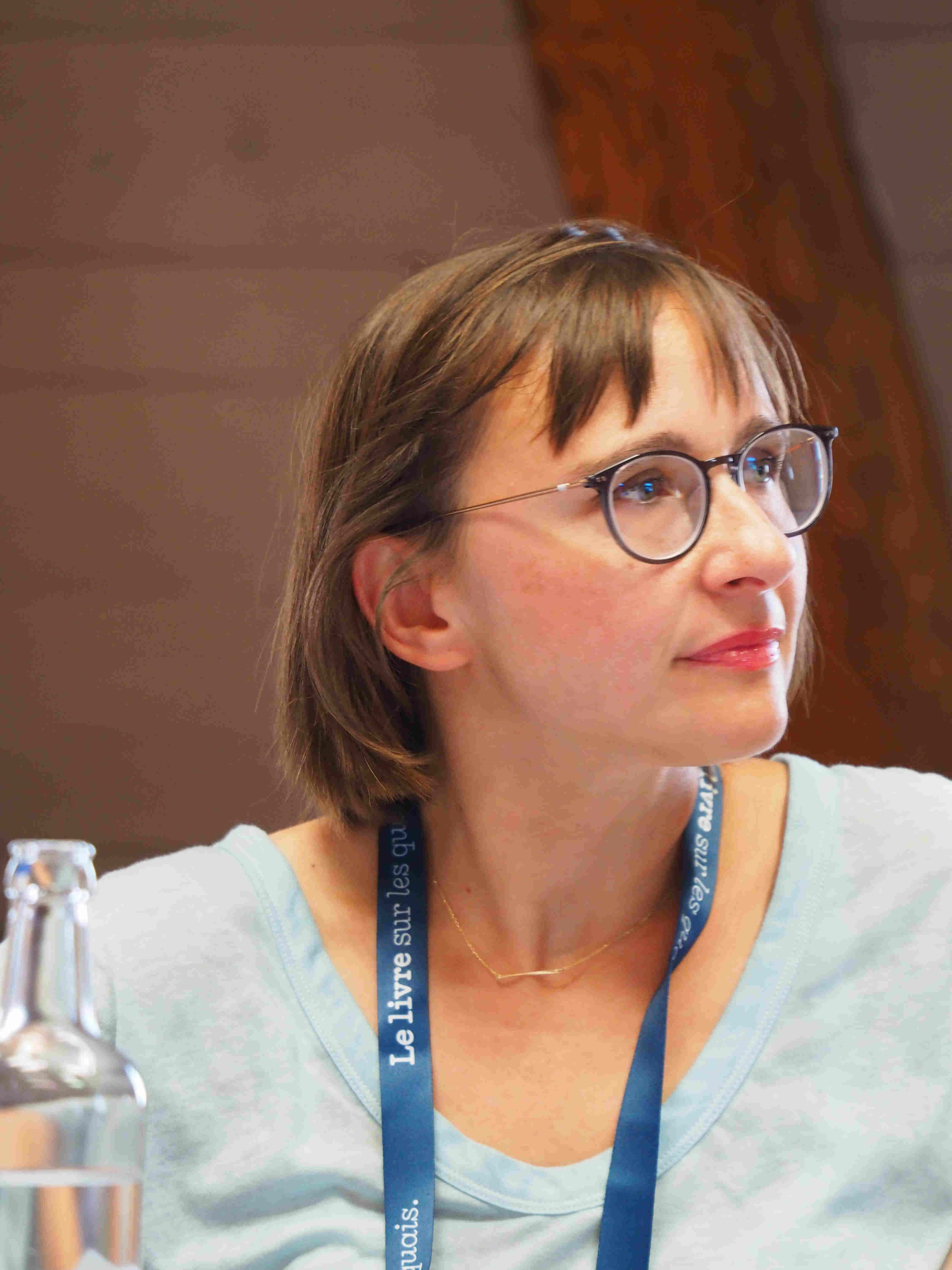 Katja Schönherr est en tandem avec Julia Deck dans cet atelier qui a pour titre « ma mère, ma bataille ». C’est une écrivaine allemande, née en RDA, vivant aujourd’hui à Zürich. Son roman, édité chez Zoé, porte le titre : « La famille Ruch ». Le personnage central est une mère, bien entendu, qui se prénomme Inge. Son fils est un beau salopard, menteur et mysogine, qui n’est pas prêt à faire un geste pour sa mère. Une petite fille, elle, est plus compréhensive, c’est par elle que passent les requêtes formulées par l’aïeule. Katja s’exprime en langue allemande, traduite par son éditrice. Elle et Julia s’entendent très bien pour déplorer la difficulté des rapports intergénérationnels. Elles donnent surtout la parole aux femmes. Les hommes disparaissent des radars par les temps qui courent… peut-être le méritent-ils bien.