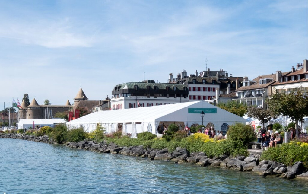 Nous sommes des habitués du Festival de Morges, « Le livre sur les quais ». C’est d’abord un lieu si agréable, au bord du Léman, avec ses deux petites tours qui marquent l’entrée du port, son lourd château fort et ses vieux édifices, et puis comme festival littéraire c’est un évènement tellement convivial, à proportions si humaines et permettant une telle proximité avec les auteurs et autrices. J’ai conversé ici librement avec des écrivains et écrivaines qui restent présents en moi : Simonetta Greggio, Jean-Noêl Schifano, Metin Arditi, Miguel Bonnefoy, Agnès Desarthe, Etienne Klein, Kamel Daoud, Claudie Hunzinger, Daniel de Roulet… j’ai parlé à certains que je ne connaissais pas et que j’ai ainsi découverts comme Odile Cornuz ou Rinny Gremaud, écouté lire leurs textes des créateurs de langage aussi ébourifants que Arno Camenish ou Mathias Zschokke. J’y ai suivi des conférences haletantes dans de petites salles ou d’autres un peu plus grandes comme celle du Casino, par des gens comme Christine Angot et Iegor Gran. Cette année, j’ai écouté dans les mêmes conditions et la même salle du Casino des écrivains aussi différents que Giuliano da Empoli et Fatou Diome (Emmanuel Carrère aussi… mais c’était un peu la même chose que ce que l’on pouvait entendre sur toutes les radios et toutes les émissions littéraires du moment!), j’ai parlé librement avec Sorj Chalendon et Corinne Atlan, j’ai salué Anne Berest en lui demandant des nouvelles de sa maman, que je connais et que j’aime bien, j’ai découvert une autrice de polars rigolote, née à La Chaud-de-Fonds, qui se nomme Emmanuelle Robert. J’ai écouté Hélène Frappat parler de son nouveau livre assez désopilant qui s’intitule Nerona et qui se moque de Giorgia Meloni, ainsi que Olivier Mannoni, grand spécialiste du langage fasciste. Et j’ai découvert cinq écrivains de langues différentes qui disaient des extraits de leurs œuvres dans leur langue avant qu’ils ne soient lus en traduction par une jeune femme aux yeux immenses. Ils se nomment Jacek Dukaj, Micha Lewinsky, Doris Femminis, Jaap Robben et Maria Sanchez, la jeune lectrice en français Julie Meyer, elle était accompagnée à la guitare par Stephane Blok, un jeune poète.