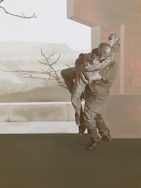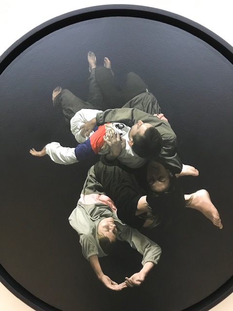 Ils ont des yeux mais c’est pour ne pas voir. Décidément, cette maxime ne me semble jamais autant pertinente que lorsque je visite un musée ou une exposition de peinture. J’ai tellement hâte de tout voir, je me précipite si goulûment vers les tableaux… que j’en perds parfois l’essentiel. Une œuvre se regarde plutôt deux fois qu’une et on aurait bien tort de n’en retenir que le premier aspect global, lequel, la plupart du temps, n’est qu’un leurre pour cacher ce que le peintre, subtilement, a voulu montrer. Montrer et non pas dire. C’est ce que Guillaume Bresson exprimait l’autre jour au cours d’une conférence au Musée de Grenoble, ponctuant l’immense et très belle exposition de ses œuvres qui s’achevait en ce 28 septembre. Entré aux Beaux-Arts de Paris à une époque où la peinture était passée de mode et honnie, il voulait, lui, en faire, justement de la peinture… et on lui dit que c’était une mauvaise idée car il ne parviendrait jamais au seul moyen de ce médium à dire tout ce qu’il voudrait dire, mais, disait-il, justement, je n’ai rien à dire… car la peinture est l’art de montrer, en effet. Faire en sorte qu’une surface suggère, produise des interprétations à qui se pose en face. C’est à peu près ce que disait déjà Stendhal, et qu’a repris Nan Goldin dans son exposition justement intitulée, à Arles, Le syndrôme de Stendhal (décidément le grand grenoblois est dans l’air du temps, tant mieux). De fait, Bresson et Goldin ont ceci en commun qu’ils font dialoguer la peinture et la photographie. Bresson part de photographies qu’il a prises lui-même de ses bandes d’amis se livrant à des jeux et des bagarres dans des parkings ou sur des boulevards gris, et il les transforme en larges toiles où les personnages tiennent à la fois du hip-hop et du Caravage, alors que Goldin part de tableaux, souvent de la Renaissance, qu’elle a adorées dans tous les musées du monde et elle s’en inspire pour des photos intimes de ses amis, de ses amant.e.s et de passants. Démarche inverse. J’ajouterai un troisième : Sigmar Polke, bien que chez lui, ce soit toute autre chose qui semble se révéler : la technique photographique dans sa chimie la plus crue et la plus menaçante. Donc deux démarches différentes, car chez les deux premiers, au contraire, tout est fait pour que la technique s’efface. Mais revenons à Guillaume Bresson.