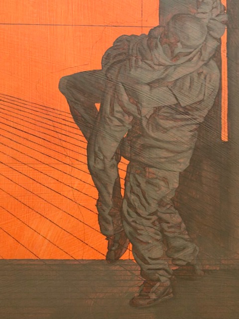 Issu d’un milieu très populaire, ayant commencé par le graffe et les battles de danse urbaine, il se trouva un jour parachuté à Paris pour y suivre les enseignements des Beaux-Arts et put découvrir en un seul coup à la fois Le Louvre, le Musée d’Orsay, le Centre Pompidou et le Palais de Tokyo, sans ordre ni hiérarchie. Sur le même plan Picasso et le radeau de la Méduse, l’art minimal et la peinture de Monet. Il en conçut une vision toute personnelle de l’histoire de l’art, et se sentit tout à fait à l’aise pour mêler intimement le spectacle de la rue, les bagnoles et les vêtements du hip-hop avec les faces tourmentées et les corps pâmés des tableaux anciens. C’est extraordinaire. Qu’y a-t-il de très différent entre une toile de tente en plastique qui claque au vent et les tentures des églises ?