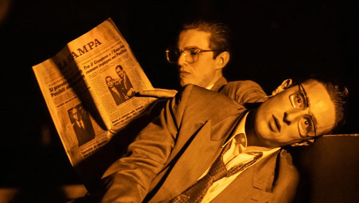 La séquence suivante dans la représentation montre une fête qui réunit plusieurs personnalités du monde politique et des affaires en Italie dans les années soixante (y compris du monde de la presse, préfiguration de ce que deviendra le pouvoir plus tard avec l’omniprésence pendant de longues années de Silvio Belusconi, et jusqu’à aujourd’hui en France où Bolloré règne en maître sur nos esprits). Une femme, madame F ., domine le groupe, elle est très agitée et porte des lunettes noires. Guido Calasegno, ex-camarade de classe de CarloValetti pilote son ami dans le salon de madame F. Le vice-directeur de l’ENI, Aldo Troya, est présent parmi les invités. Il succède à Enrico Bonocore, lequel a succombé dans un accident d’avion. Ceux qui se souviennent de cette époque lointaine feront le rapprochement avec le fameux Enrico Mattei, ex-président de l’ENI, disparu mystérieusement (le cinéma italien s’est déjà emparé de cette affaire par le passé, cf. le film de Francesco Rosi, palme d’or à Cannes en 1972, « l’Affaire Mattei »). Une fois entré dans ce monde de la finance, de l’industrie et de la politique, reste à Carlo d’y faire son trou et d’y faire carrière. Ici une formidable parabole prend place : celle de la rencontre avec Dieu, à moins que ce ne soit le Diable (et réciproquement!). Le passage en question, qui est contenu dans la note 34bis, est le « premier conte sur le Pouvoir ». C’est l’histoire d’un intellectuel, dit le récit, « qui cherche à atteindre dans sa vie des buts grandioses » et qui, une nuit, se réveille avec au pied de son lit, une Force Obscure. Laquelle lui demande quel est le but de sa vie, et qui, face à ses tergiversations, lui assène que bien sûr le but de sa vie est le Pouvoir. Surpris, le personnage acquiesce (« puisque tu le dis… »). Alors la Force Obscure se propose de l’aider et pour cela lui demande par quel moyen il souhaite accéder à ce but. Le prestige littéraire ? L’emploi dans une grande entreprise ? La politique ? Et non, dit-il au Diable (car c’est bien du Diable qu’il s’agit), c’est par la sainteté qu’il souhaite arriver. Et dès le lendemain matin, il commença sa carrière de saint, dit l’histoire. Ayant aussitôt à tenter de concilier l’inconciliable, comme la Foi et l’Espoir d’un côté et la Charité de l’autre, mais cela ne faisait rien, il était dans la sainteté réelle, au point qu’une autre nuit, c’est une Force Lumineuse, non plus Obscure qui l’accueillit, et que lui fit la révalation des révélations : la figure du Diable n’était qu’une ruse, pour mettre les gens à l’épreuve, seul Dieu existait et cette Force était Dieu. Notre Héros ne se sent plus de joie. Maintenant que tu sais… va, retourne sur terre dit la Force Lumineuse, mais une seule condition : en t’en allant, ne te retourne pas. Mais bien sûr, on l’a compris, le héros en partant va se retourner.. et ce qu’il verra c’est bien la figure du Diable qui se gondole doucement en se moquant de lui.