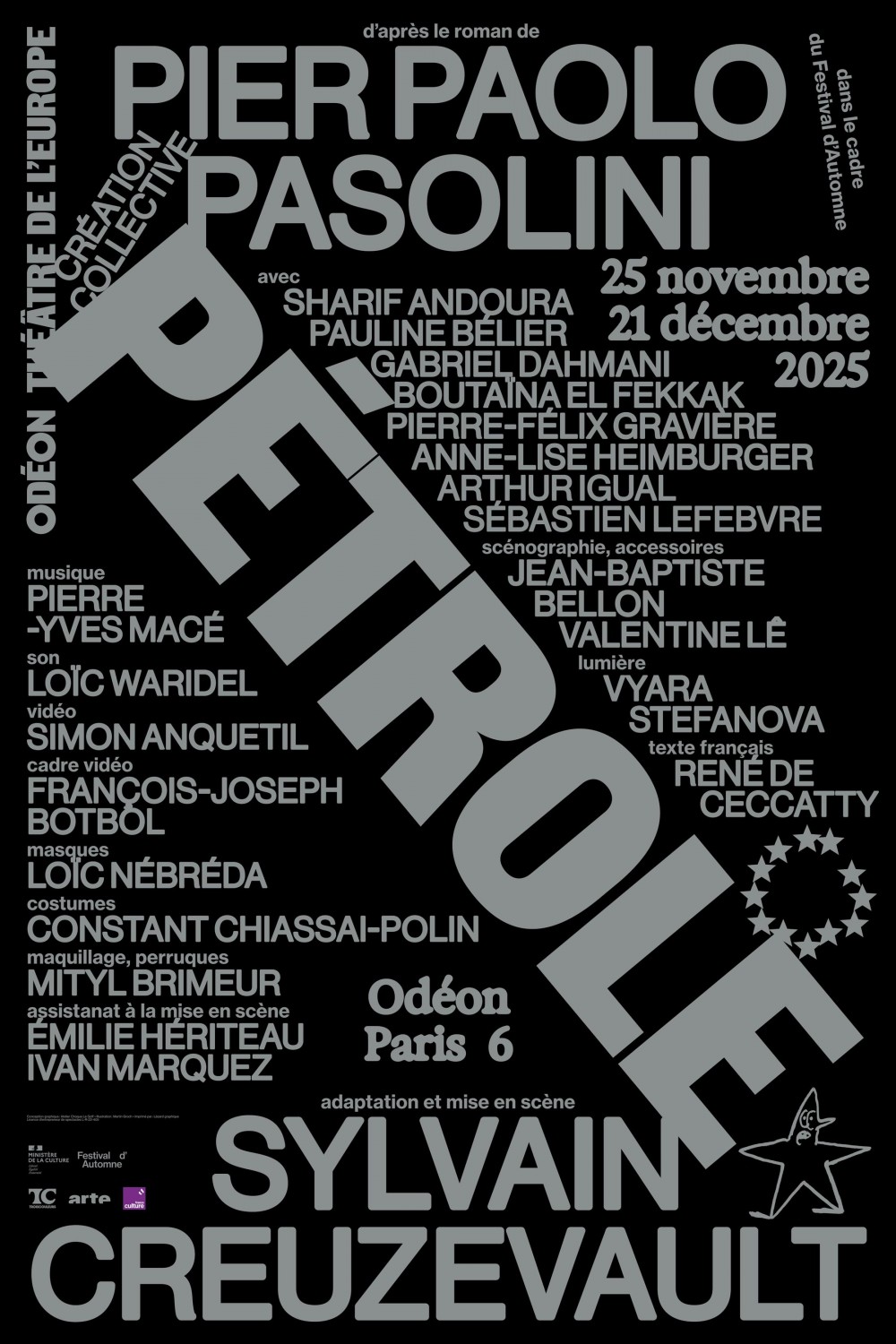 Retour sur ce spectacle qui nous a tellement impressionné C. et moi, à Paris, le 21 décembre, au Théâtre de l’Odéon. Je ne me sens pas capable d’en fournir une analyse minutieuse (encore moins une critique). Pour cela on se reportera à un blog que je viens de découvrir, et qui est cent fois supérieur au mien par sa richesse d’expériences et d’analyses de pièces de théâtres et d’autres oeuvres littéraires : https://www.arnaudmaisetti.net/spip/ (les carnets d’Arnaud Maïsetti, voir ici le billet sur Pétrole) . Pour ce qui me concerne, je me contente, comme d’habitude et dans d’autre domaines, de donner mes sentiments, mes impressions, de me livrer à quelques associations d’idées, d’établir des rapports avec des sujets de préoccupation dont j’ai déjà témoigné ici (sujet social / sujet de l’inconscient, forme-sujet du capitalisme, rôle de l’art et de la poésie etc.). Qu’on pardonne mes insuffisances. Ho sbagliato tuttosignifie « je me suis complètement trompé », c’est le vers par lequel commence un poème célèbre de Pasolini : le poème en forme de rose. J’ai choisi ce titre non parce que je voudrais dire que « je me trompe tout le temps », ce qui aurait, entre parenthèses, le mérite de faire revivre le paradoxe du Menteur, thème récurrent dans l’histoire de la logique – qui est quand même un de mes thèmes de prédilection – mais plus modestement pour dire que, comme d’autres, je suis toujours dans le risque de me tromper, et qu’il n’est pas d’écriture conséquente, même sur un blog, sans ce risque éprouvé de tomber dans l’erreur, une manière de frôler sans arrêt le précipice.