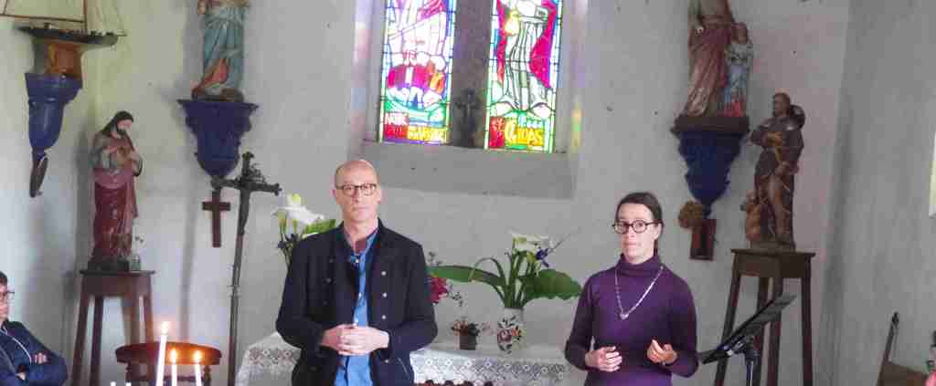 où l’on chantera ce samedi les complaintes du Gwerziou, à deux voix, a capella comme il se doit, voix douces et de tête de Karen, qui loge au même gîte que nous, et d’Axel, le collecteur des œuvres de Jonas Dagorn, poète méconnu, impublié et mort trop tôt, qui traduisait les vieux chants bretons et en écrivait d’autres, comme Le sorcier d’Ouessant, ou le Bois de nos amours. Quelle beauté ces chants, dont certains nous viennent de plus de mille ans, et qui nous parlent de naufrages, de coeurs brisés suite à promesses non tenues (Ar studier pe ar galon digor – chant de Haute Cornouaille), de moine fuyant les persécutions, comme Saint Gildas, ou de la peste, encore elle, mais celle de 1650 cette fois, dite la peste d’Elliant, mise sous la forme gavotte par un couple de chanteurs de Landeleau.
