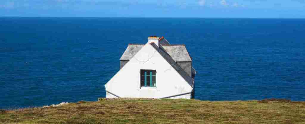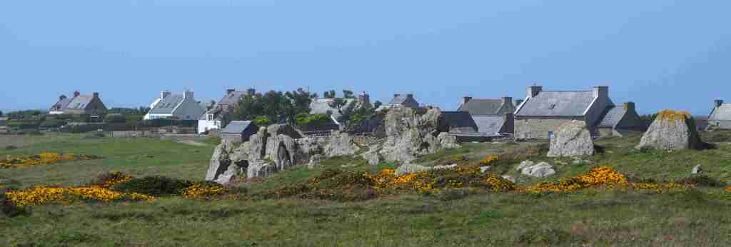 Le 18 avril, nous retournons vers ces lieux, ayant raté le village et la pointe de Kadoran. Kadoran est un village principalement de ruines. Les lois imposent que l’on ne reconstruise pas les maisons s’il en manque la poutre faîtière, or c’est le cas ici. Comment en est-on arrivé là ? Un incendie peut-être. Quant à la pointe de Kadoran, au-delà du phare du Stiff, le plus vieux de l’île, édifié par Vauban, en deux tours accolées, l’une pour l’escalier à vis, et l’autre pour les logements des gardiens, elle n’est surmontée que d’une seule maison, aux volets bleus, dominant la mer.
